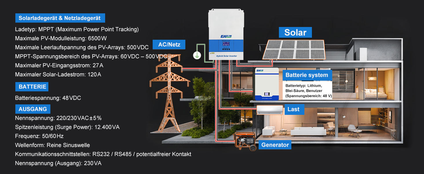 Bauen Sie Ihr Solarsystem mit dem EASUN POWER 6200W Wechselrichter