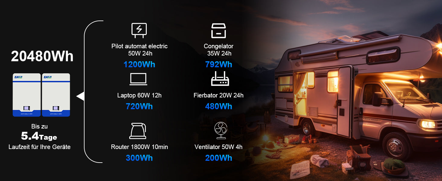 - Hohe Ausgangsleistung – Unterstützt bis zu 5,12 kW, versorgt mehrere Haushaltsgeräte gleichzeitig