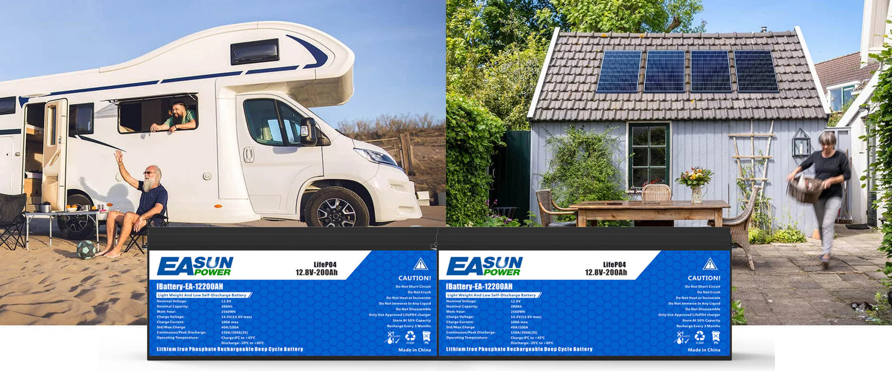 Versorgen Sie Ihren Campervan oder Ihre Gartenhütte mit zwei EasunPower 12V 200Ah LiFePO4-Batterien im Set.