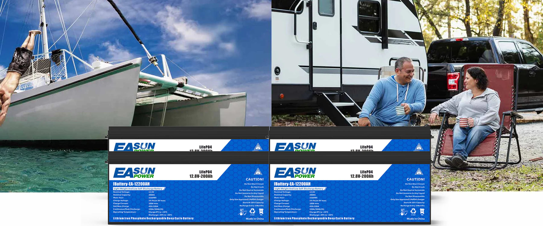 Ob Sie mit dem Katamaran unterwegs sind oder einen Fifth-Wheel-Wohnwagen ziehen – das 4er-Set der EasunPower 12V 200Ah Pro LiFePO4-Batterien verwandelt Ihr Outdoor-Erlebnis durch leistungsstarke und zuverlässige Energieversorgung.